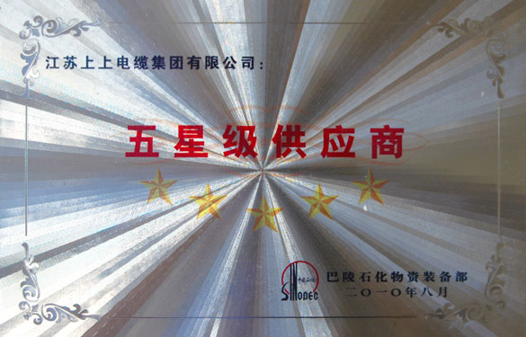 日前,憑著優(yōu)質(zhì)的產(chǎn)品質(zhì)量、及時交貨能力及良好的售后服務,江蘇上上電纜集團再次被巴陵石化物資裝備部授予“優(yōu)秀供應商”及“五星級供應商”稱號。