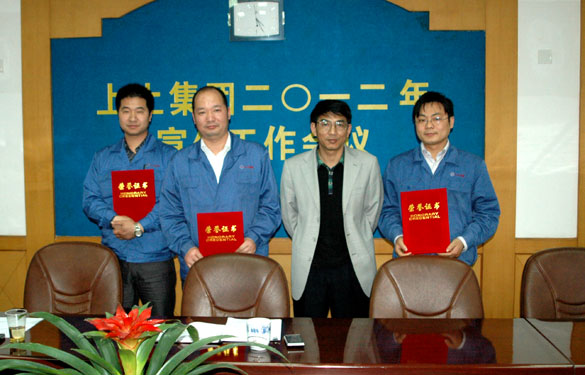 在對(duì)2011年宣傳工作先進(jìn)個(gè)人與集體進(jìn)行表彰頒獎(jiǎng)后,朱副總在會(huì)上做了重要講話,他認(rèn)為2011年企業(yè)宣傳工作緊跟企業(yè)發(fā)展形勢(shì),成績是主流,作用很大,通過宣傳,在內(nèi)部提高了員工的凝聚力,在外部提升了企業(yè)形象。尤其是企業(yè)內(nèi)刊《上上文化》通過精心組織策劃,榮獲江蘇省企業(yè)報(bào)金獎(jiǎng)20佳等稱號(hào),這些成績的取得與各位通訊員、各部門分廠負(fù)責(zé)人的努力和重視是分不開的。