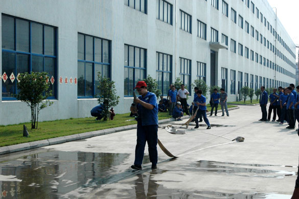 在隨后舉行的消防模擬演練中,各分廠、物流部、行政、木盤組等12個(gè)代表隊(duì)36人參加了此次活動(dòng)。模擬演練分為兩個(gè)環(huán)節(jié),第一個(gè)環(huán)節(jié)為滅火器定點(diǎn)滅火,第二個(gè)環(huán)節(jié)為接消防水帶滅火,分別檢驗(yàn)員工對(duì)滅火器及消防水帶的掌握及運(yùn)用情況。同時(shí),為檢驗(yàn)各兼職消防員的快速反應(yīng)與配合默契程度,演練使用競(jìng)賽制,每一位參賽員工都認(rèn)真參與,嚴(yán)格按照消防要求進(jìn)行操作,整個(gè)過程緊張有序,吸引了不少員工前來觀戰(zhàn)。經(jīng)過激烈的角逐,最終木盤組獲得第一名,船纜分廠獲得第二名,超高壓分廠獲得了第三名。