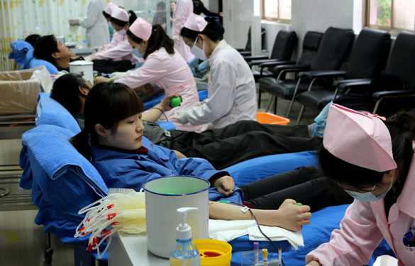 在采血現(xiàn)場,從獻(xiàn)血員工登記、填表、核對身份證號、到現(xiàn)場化驗、采血以及最后獻(xiàn)血證的發(fā)放,上上集團(tuán)員工依照順序、積極配合。本次成功采血者90多人,超過26000毫升。