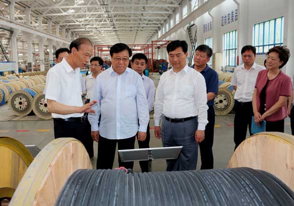 6月7日,中央第三巡回督導(dǎo)組組長、全國人大常委、環(huán)境與資源保護(hù)委員會主任委員、甘肅省委原書記、人大常委會原主任陸浩一行親臨江蘇上上電纜集團(tuán)調(diào)研黨的群眾路線教育實(shí)踐活動落實(shí)情況。江蘇省、常州市、溧陽市相關(guān)領(lǐng)導(dǎo)陪同。集團(tuán)董事長、總經(jīng)理丁山華、常務(wù)副總經(jīng)理丁志鴻等公司高層領(lǐng)導(dǎo)進(jìn)行了熱情接待,并全程陪同督導(dǎo)組實(shí)地調(diào)研。